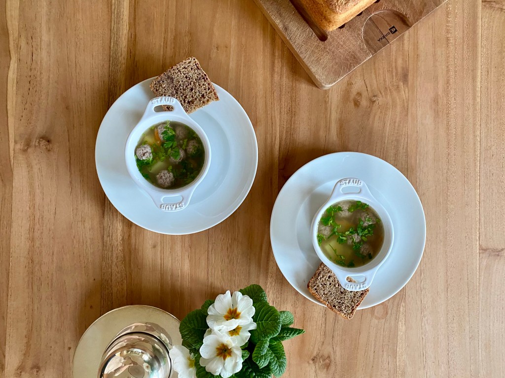 „Mmh, das ist die beste Suppe von allen!“ – meintest du, Emma, beim Abendessen. „Menschen machen diese Suppe nicht“, – erwiderte Moritz. Um dann zu erklären: „Nur die Oma und wir kochen diese Suppe, andere Menschen nicht“. In der Tat wird auch dieses Gericht in unserer Familie inzwischen auch schon in der dritten Generation gekocht. Mit der Suppe würden wir nicht zum Innovationswettbewerb antreten, aber genau diese Einfachheit macht ihren Charme aus – für Gross und Klein. Mit dem Süppchen verabschieden wir nun endgültig den Winter 2021, und freuen uns auf die Sommerzeit! Weiter geht’s mit dem Rezept.