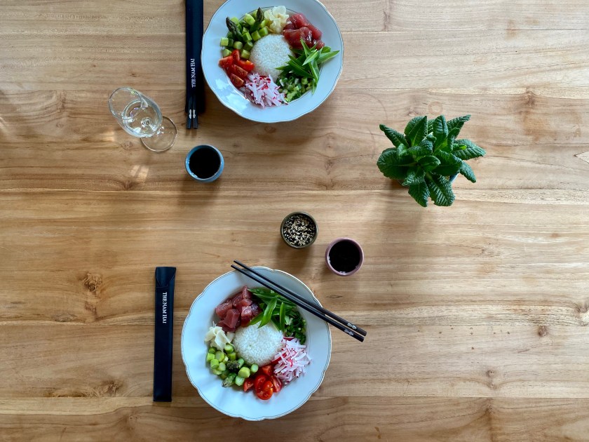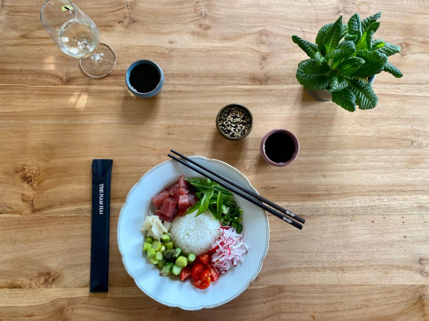 Liebe Emma, lieber Moritz. Der Trend zu Poke Bowls ging erstaunlicherweise eine Zeit lang an uns vorbei. Umso mehr ist das Gericht zu einem festen Bestandteil unseres Alltags geworden. Ich mag es, weil man auf diese Weise so viele Gemüsearten beliebig kombinieren kann. Ihr, weil ihr so eures Gericht am Tisch selbst zusammenstellen könnt. Es ist bunt, frisch und vitaminreich. Zu dieser Version hat mich Foodblogs Schweiz und El Pesquador inspiriert. Für ihre aktuelle Food Challenge hat sich Foodblogs Schweiz Frühlingszutaten wie Spargeln, Radieschen, Frühlingszwiebeln und Bärlauch ausgedacht. Gleichzeitig haben wir die letzten Wochen jeden Samstag im El Pesquador Pop-up in der Milchbar Zürich zu Mittag gegessen. Corona-bedingt natürlich als Take-away. Auf einer Bank im schönen Innenhof haben wir die ersten warmen Sonnenstrahlen in diesem kalten Frühling 2021 genossen, ich mit einer Poke Bowl und einem Glas Champagner, ihr mit einer Runde Fish & Chips. So kam die Idee, dass die von Foodblogs Schweiz vorgegebenen Zutaten am besten ihre Verwendung in einem Thunfisch Poke Bowl „Hello Spring“ finden würden. Weiter geht’s mit dem simplen Rezept dazu.
