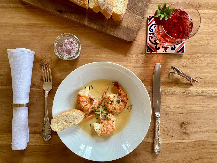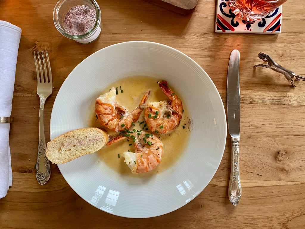 Liebe Emma, lieber Moritz. Dieses Gericht ist DAS Signature Dish von eurem Papi. Auch das erste, welches er für mich gekocht hat, als wir uns kennenlernten. Es gibt vermutlich niemanden in unserem Freundeskreis, der die flambierten Gambas noch nicht probiert hat. Früher haben wir sie mit Risotto Milanese oder hausgemachten Tagliatelle serviert. Inzwischen haben wir am liebsten einfach nur ein geröstetes Baguette dazu. Sie sind so schnell zubereitet und so lecker. Einzige Voraussetzung für gutes Gelingen – man muss die Kunst des Flambierens beherrschen. Zwei Regeln müsst ihr euch merken, wie wir aus eigener Erfahrung wissen. Regel Nummer 1: immer schön den Dampfabzug abstellen, bevor flambiert wird. Regel Nummer 2: nicht in fremden Küchen kochen, unser Mallorca-Versuch ging gerade noch gut. Und hier geht es zum Rezept: