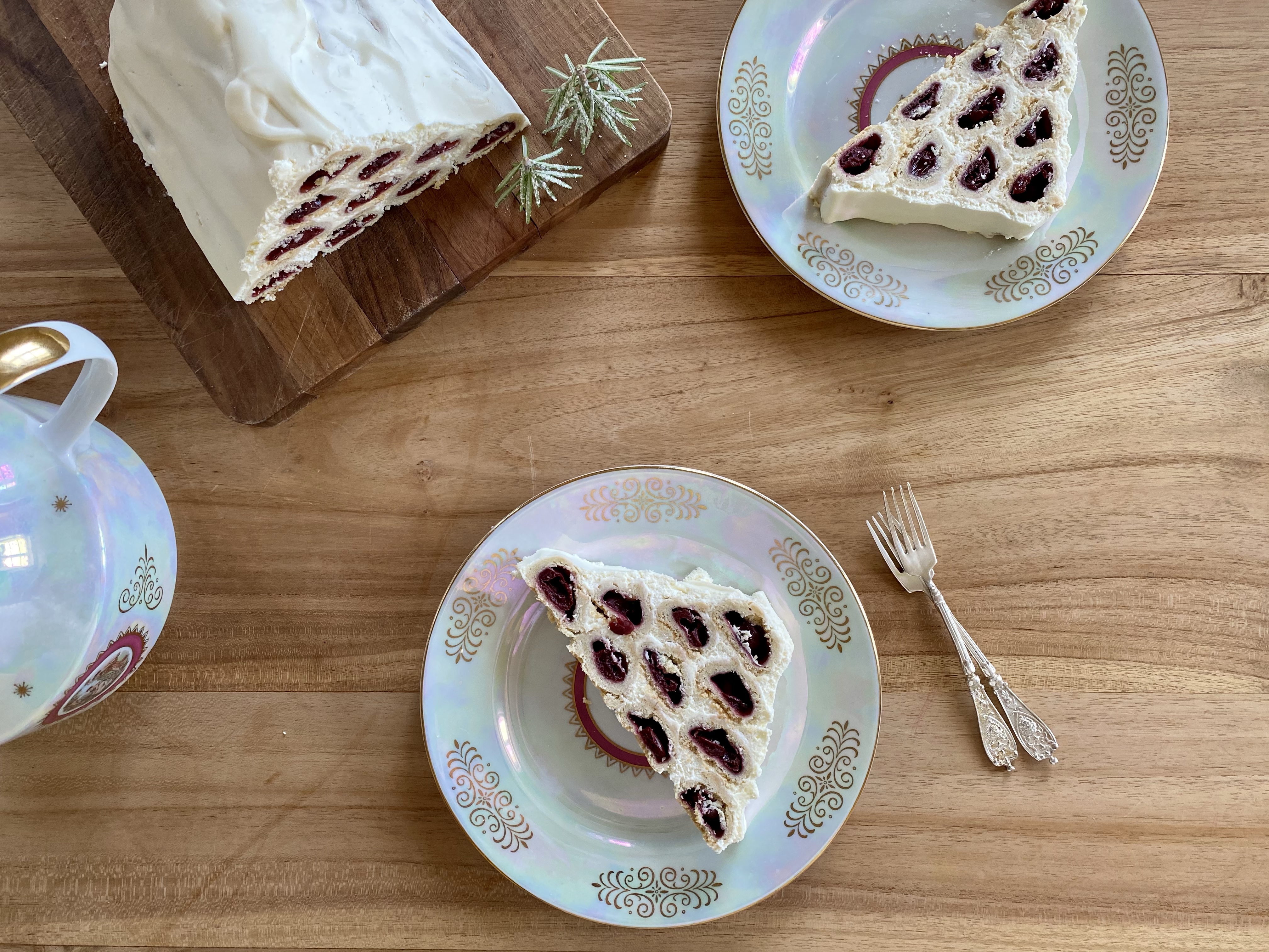 Liebe Emma, lieber Moritz. Würden wir unser aktuelles Moodboard erstellen, wäre er schneeweiss. Mit euch entdecken wir gerade die Schlittelpisten in unserer Gegend, ihr lernt Schlittschuhlaufen, und bald steht Skischule auf dem Programm. Ich bin ein Sommermensch, aber mit euch macht auch der Winter richtig Spass. Schneeweiss ist auch die Farbe dieser Torte. Meine aktuelle Kochphase könnte man nostalgisch nennen. Vielleicht liegt es daran, dass eure Oma uns jetzt häufig besucht und mit ihren Gerichten verwöhnt. Vielleicht ein wenig an der aktuellen gesellschaftlichen Situation, in der man sich nach sicheren Werten sehnt. Jedenfalls, während ich normalerweise immer neue Gerichte ausprobiere, koche ich gerade die alten, die aus meiner Kindheit, nach. Und stelle fest, dass sie noch genau so gut schmecken, wie damals. Diesen Kuchen habe ich das letzte Mal sicher vor 20 Jahren gegessen. In meiner Schulzeit gab es ihn praktisch zu jeder Feier. Ich liebe die Kombination aus Sauerkirschen und Crème fraîche. Sie verlangt etwas Übung ab, und ist auch etwas aufwendig in der Herstellung, das Ergebnis ist es aber allemal wert. Weiter geht’s mit dem Rezept: