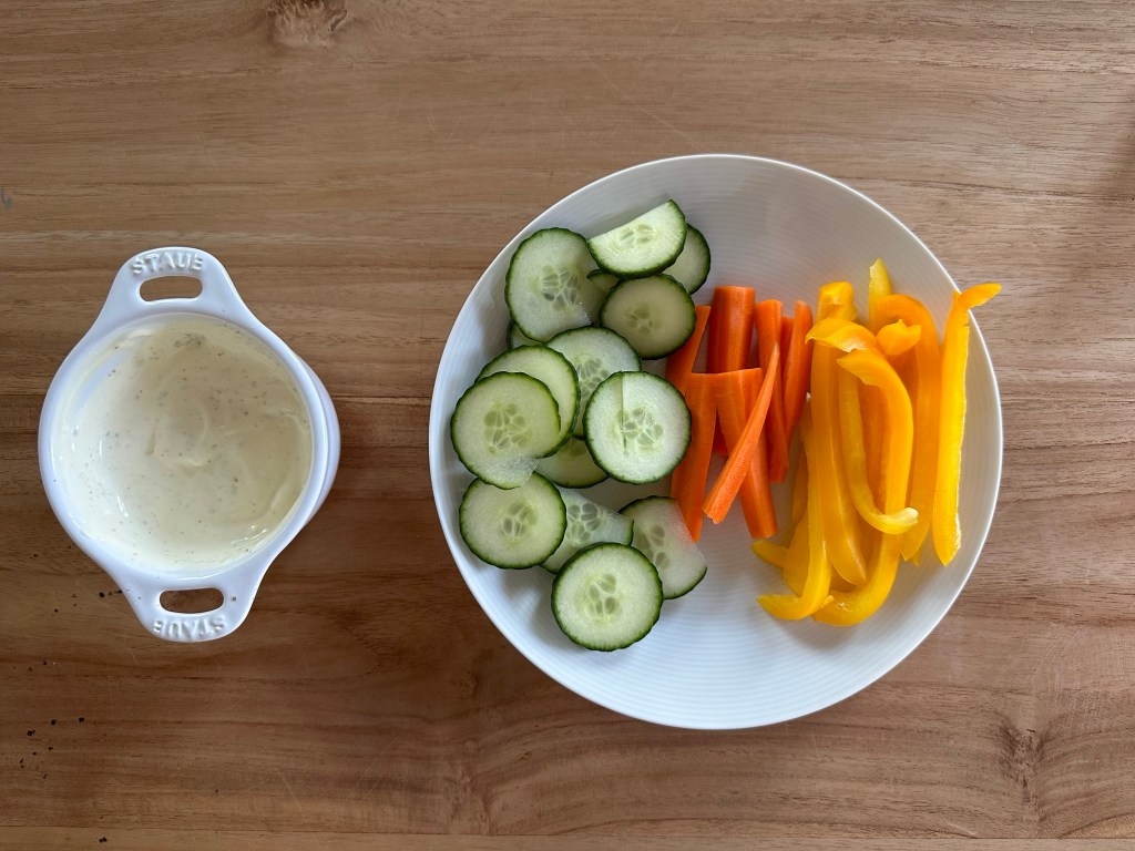 Gemüse Dip – dein erstes vollständig selbstzubereitetes Gericht, liebe Emma – von der Idee bis zur Umsetzung. Ich freue mich schon auf deine nächsten Kreationen.
