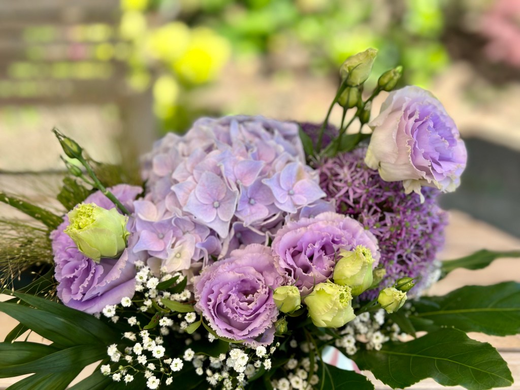 Diesen Blumenstrauss haben wir von unseren Gästen geschenkt bekommen, die in den Genuss der Mini-Pavlovas kommen durften – ich liebe diese Farben!