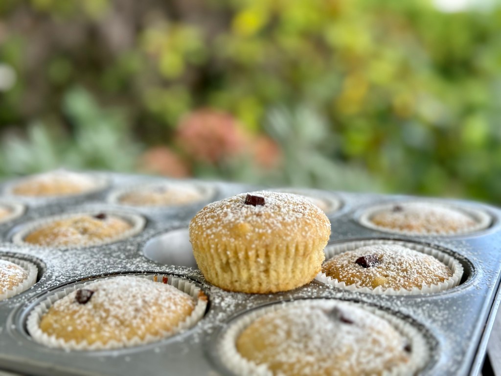 Und was gehört zum Schultag dazu? Natürlich! Eine Znünibox. Hier das Rezept für euren ultimativen Lieblingsznüni. Bananen-Schokomuffins nach Donna Hay. Sonst seid ihr gar keine grossen Muffin-Fans. Aber diese hier schmecken euch seit der Kitazeit. Ihr habt mir bereits paarmal beim Backen geholfen, und Emma hat sie sogar schon fast ohne meine Hilfe gebacken.